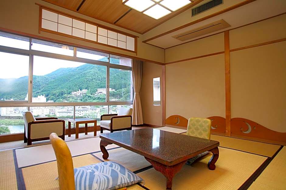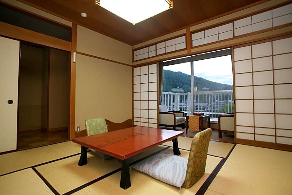 This family room features a private open-air bath. Featuring free toiletries and bathrobes, this family room includes a private bathroom with a bath, a shower and a bidet. The air-conditioned family room features a flat-screen TV, tatami, a safe deposit box, an electric kettle as well as mountain views. The unit has 4 futons.